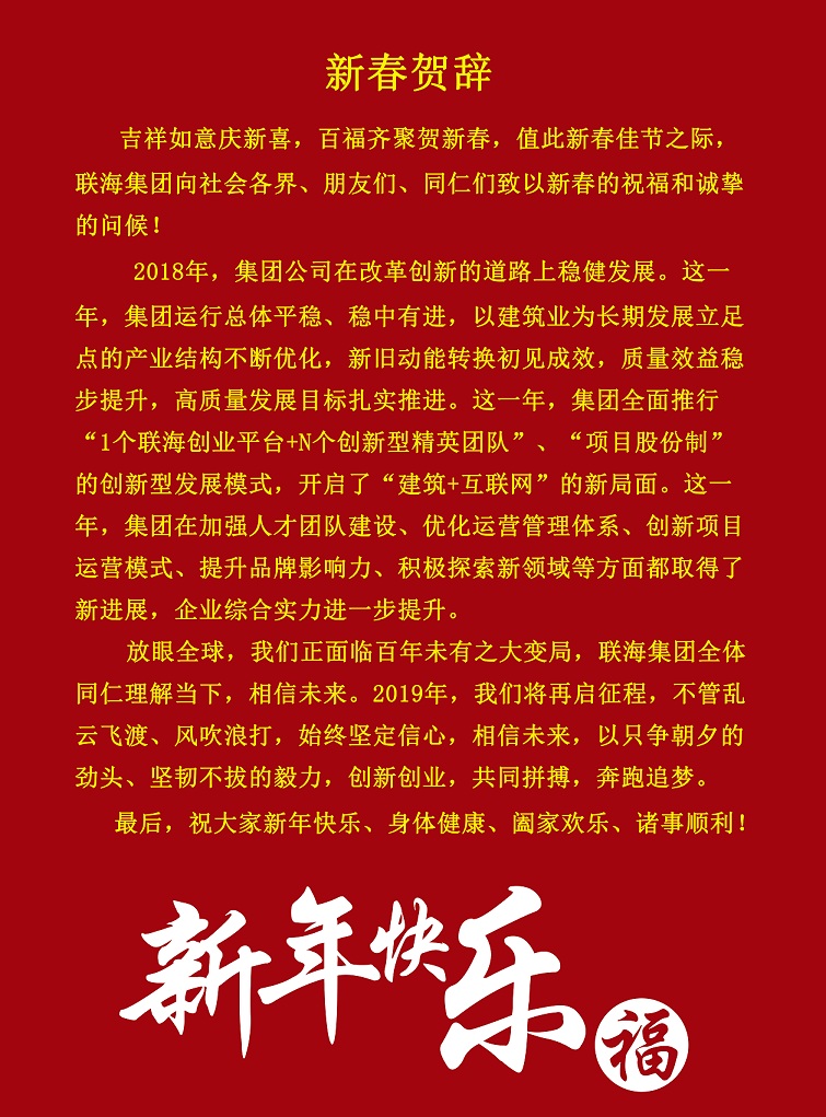 ------聯(lián)海集團2019年喜迎新春會 2019年1月12日注定是一個喜慶的日子、一個振奮人心的日子、一個對未來充滿期待的日子;聯(lián)海集團全體同仁共聚翡翠湖·迎賓館,大家歡聚一堂、凝心聚力、總結(jié)過去、理解當(dāng)...