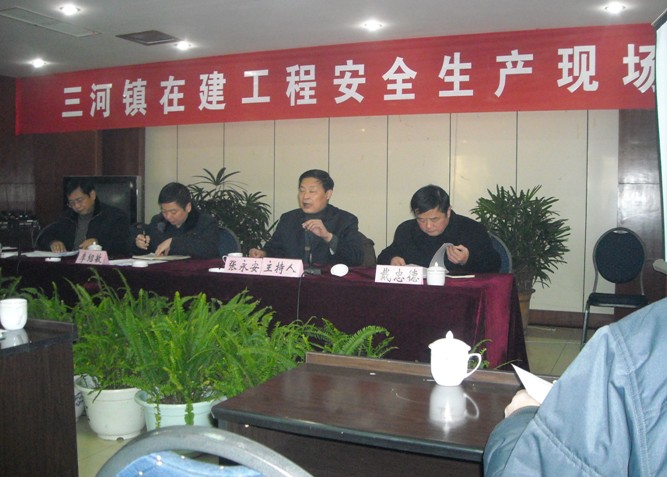 三河鎮(zhèn)在建工程安全生產(chǎn)現(xiàn)場(chǎng)會(huì)于2009年12月19日09時(shí)在三河國(guó)際大酒店隆重召開,肥西縣建設(shè)局黨組書記張永安同志參加并主持會(huì)議,參加會(huì)議的領(lǐng)導(dǎo)還有肥西縣建設(shè)局局長(zhǎng)李紹敏,副局長(zhǎng)解軍培,副局長(zhǎng)戴忠德等。