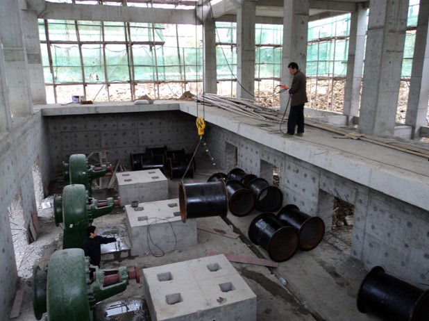 肥西縣濱湖泵站更新改造工程作為國家擴(kuò)大內(nèi)需項(xiàng)目之一,由我公司施工的中派站工程自開工以來,我公司就組織精干力量投入現(xiàn)場,保質(zhì)量、搶進(jìn)度。在經(jīng)過四個(gè)多月的緊張施工后,目前主體工程已經(jīng)封頂,設(shè)備安裝工作已經(jīng)開始。