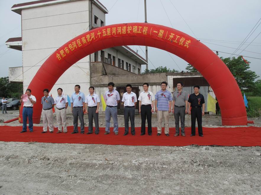 2010年7月27日,南淝河綠色港灣段鑼鼓喧天、鞭炮齊鳴,由我公司承建的合肥市南淝河護(hù)砌工程(一期)開工典禮在此隆重舉行。合肥市水務(wù)局徐春雷局長(zhǎng)、陳敏副局長(zhǎng),包河區(qū)政府黃區(qū)長(zhǎng),合肥市巢湖沿岸生態(tài)環(huán)境綜合治理工程建設(shè)管理局方守陽(yáng)副局長(zhǎng)、施道勝總工程師,省水利水電勘測(cè)設(shè)計(jì)院駱克斌總工程師,淝河鎮(zhèn)相關(guān)領(lǐng)導(dǎo),監(jiān)理及施工單位負(fù)責(zé)人等參加了開工儀式。