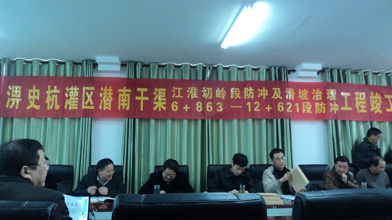2013年12月17日,淠史杭灌區(qū)潛南干渠(6+863~12+621)段防沖、江淮切嶺段防沖及滑坡治理工程竣工驗收會議在潛南分局磨墩管理所召開。合肥市水務局、合肥市財政局、合肥市水利工程質(zhì)量監(jiān)督站、安徽省淠史杭灌區(qū)續(xù)建與節(jié)水改造工程建設管理局、肥西縣財政局、肥西縣水務局、 潛南分局以及勘探、設計、監(jiān)理、施工單位參加會議。驗收委員會在通過查看工程建設現(xiàn)場情況、 觀看影像資料, 聽取建設、勘測、 設計、 施工、 監(jiān)理等單位情況匯報后認為,淠史杭灌區(qū)潛南干渠(6+863~12+621)段渠道防沖工程已按批準的建設內(nèi)容全部完成, 工程資料齊全,同意通過竣工驗收。