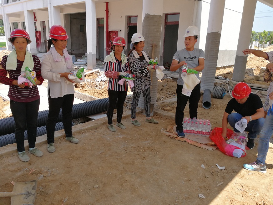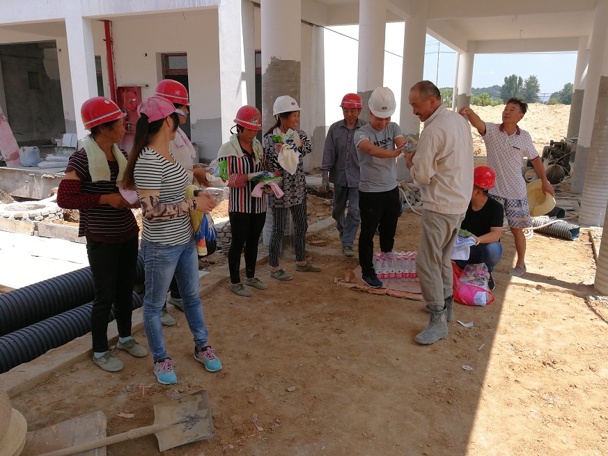 夏日驕陽(yáng)似火,酷熱難耐,我司駐項(xiàng)目人員依然奮戰(zhàn)在施工第一線,戰(zhàn)高溫,斗酷暑。公司十分重視駐場(chǎng)人員的身心健康,近期開(kāi)展了夏季送清涼活動(dòng),慰問(wèn)在酷暑中堅(jiān)守崗位、辛勤勞動(dòng)的一線職工,為他們送去毛巾、香皂、仁丹、菊花茶、礦泉水、西瓜等防暑降溫用品,讓他們?cè)谘籽紫娜罩懈惺艿揭魂嚒扒鍥觥薄?