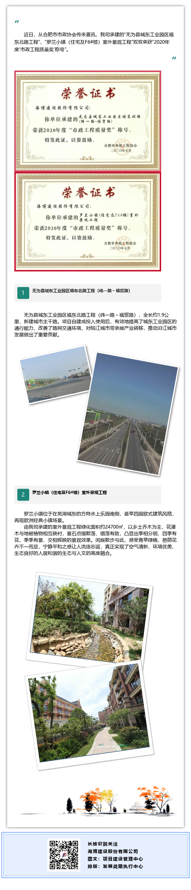 公司兩項目喜獲合肥市“市政工程質(zhì)量”獎