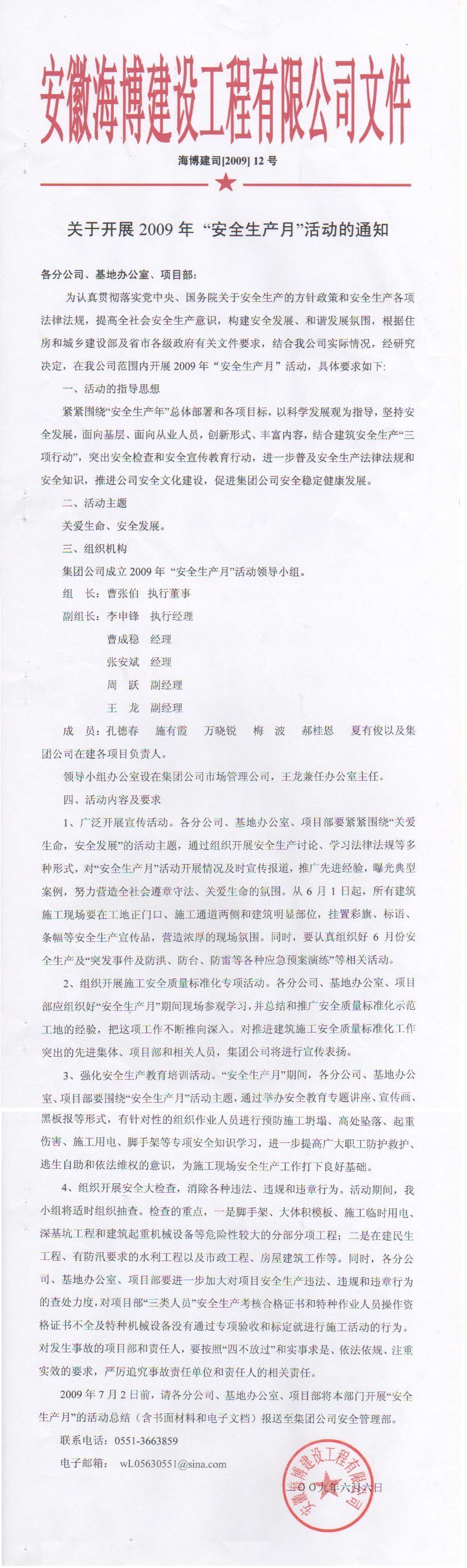 關(guān)于開展2009年 “安全生產(chǎn)月”活動的通知
